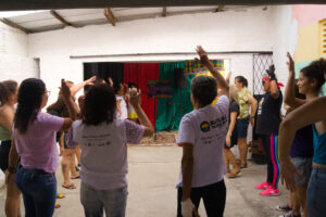 Iniciamos o encontro com um momento de práticas de alongamento e aquecimento, mediado por Cristina Diógenes (@criisdiog).😍